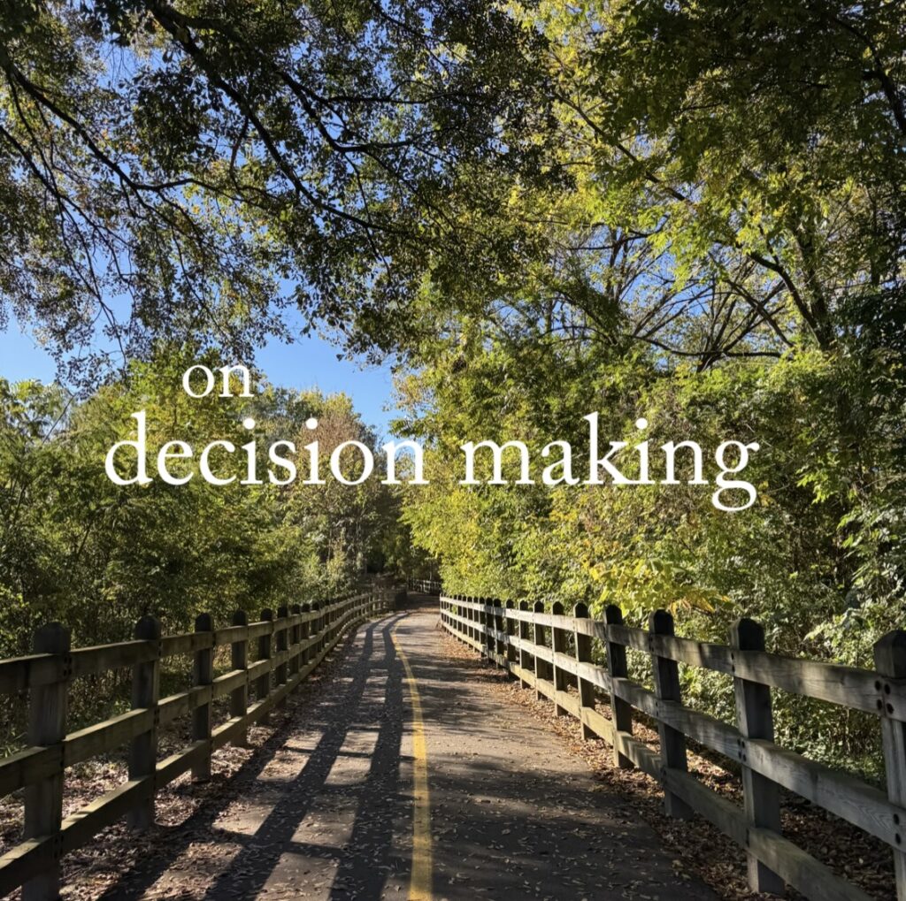 What I loved most about Rothman’s reflection was that he wants to make us writers rather than readers of our own existence. Maybe part of decisions is aspiring to be somebody or be something new. Writing a new story, changing what we aspire to be, want to want certain things.